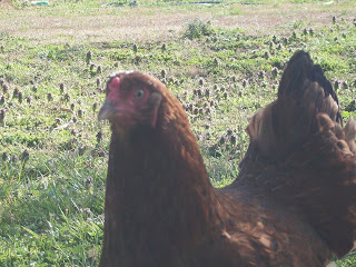 This afternoon as I went to feed for the evening and tuck the goats,dogs,chickens ,ducks and rabbits in their beds for the night ,I grabbed a banana as a snack .As I reached the goat lot I still had not finished my banana so I decided to sit on the bank and watch the goats play as I finished eating it.Big mistake !As any of you that own chickens know they will follow you much like a dog if they are pets.Well my chickens are pets and so my snack soon became their snack.I sat on the bank pinching pieces of banana off and hand feeding it to the chickens.The feeling of sitting there surrounded by my chickens was one of peace and contentment.It was such a small thing but I am so thankful to be able to enjoy my animals knowing that their friendship and love is unconditional.I have long thought that the best friend that a person can have is an animal for they do not judge you harshly or unfairly.Give them love and they return it tenfold .