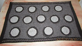A penny rug that I did to go in my bedroom.The lighter pennies are done in shades of gray.