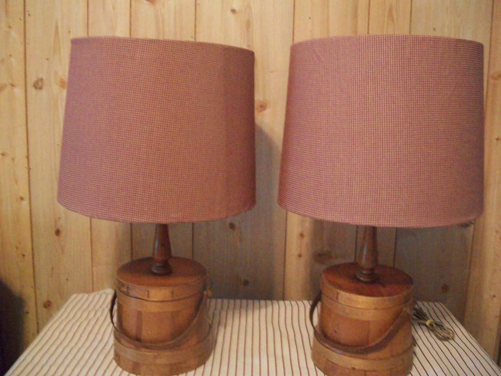 My sister bought me a wonderful gift a little earlier in the week and I was doing the happy mouse dance ! She found a pair of firkin lamps and she knew I would be over the moon to have them.I LOVE firkins and wooden bowls. I will admit that I found the shades to be a bit ugly but that was an easy fix. She asked me what color are you going to paint them and was surprised when I told her I am not painting those lamps. So here are a couple pics the before and after :