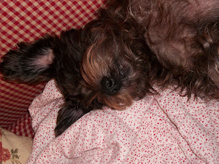 Yes, Gretchen looks a lot like my miniature schnauzer on rainy days. Not much happening when he sits by the doors, so he snoozes away on whatever piece of furniture is near by me, hehe.