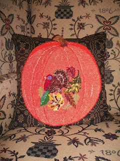It is pouring rain here today so I thought it would be a good time to share a couple more projects that I have finished recently.I am really enjoying needle punching and find it to be a fun ,relaxing craft. The first project is of a pumpkin that I dyed the orange thread for using Rit dye.