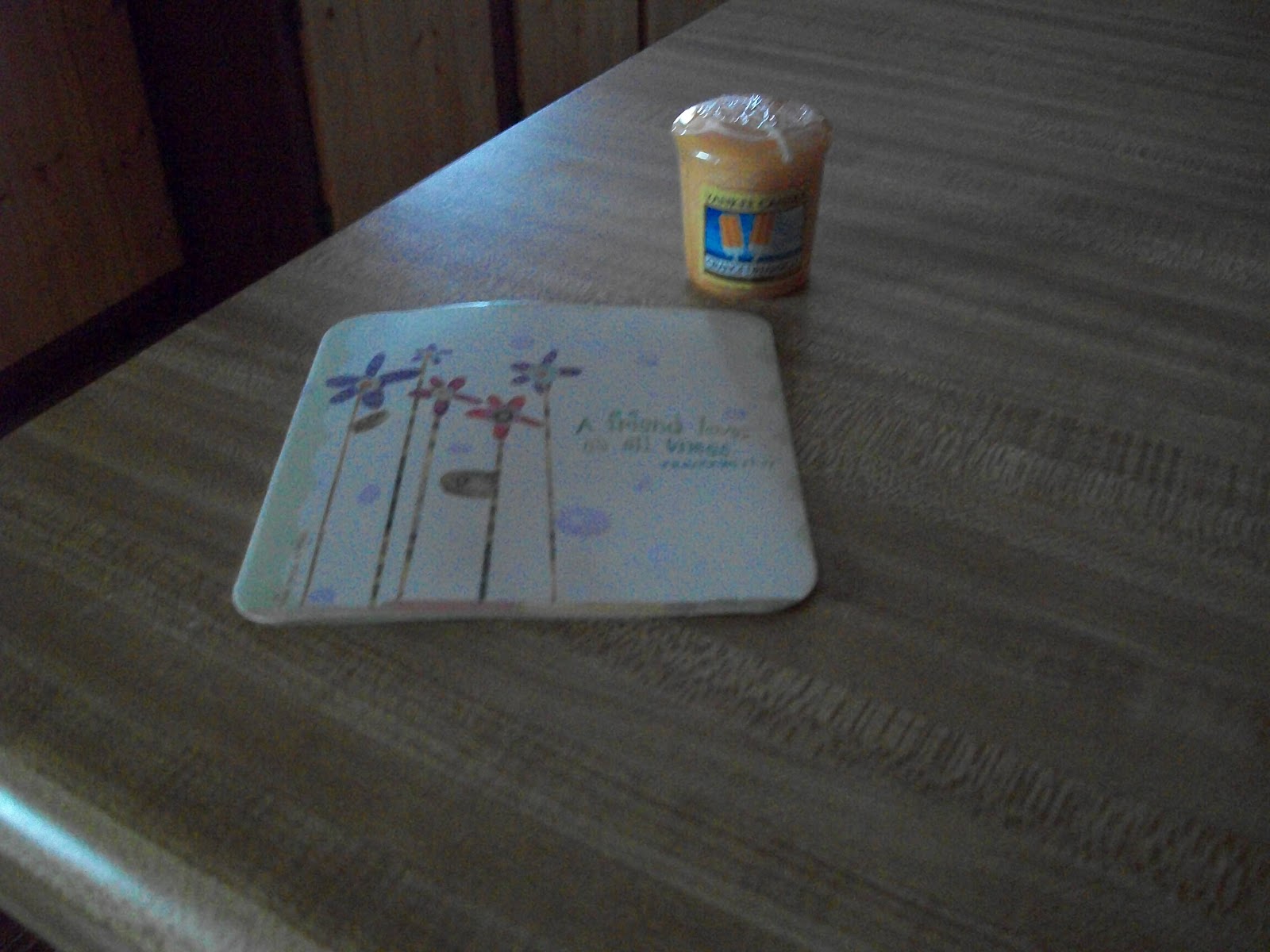A yummy smelling Yankee votive and a sweet friendship card!I told  ya she spoiled me !!! She did a wonderful job on it all and I love every thing that she sent!My thanks Trace for such a wonderful package of goodies and your friendship !It made my week!