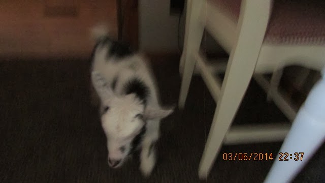 This is one of the things that has been keeping me busy.I apologize about the poor pictures but she just would not be still.She is hopefully going to be going back outside this weekend or the beginning of next week.She is a super sweet little goat.Folks may I introduce Penny......